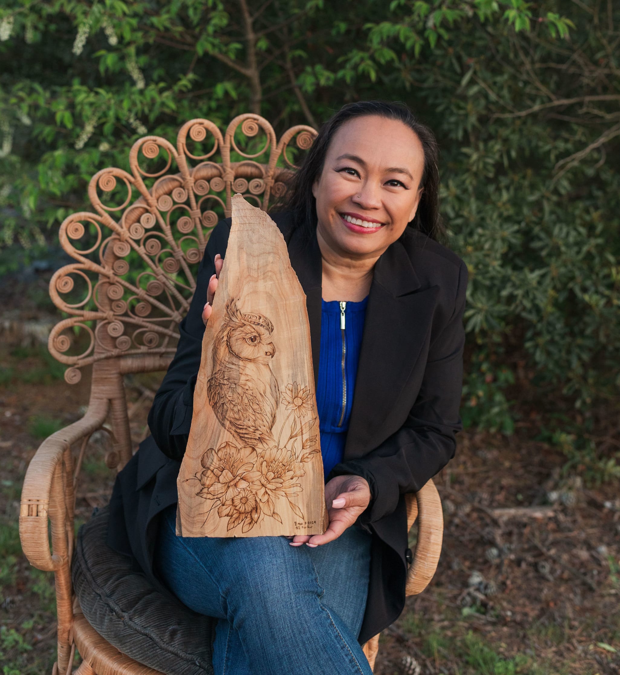 I taught myself Pyrography in 2021. There’s something about burning designs into wood, watercolor paper and other mediums that’s so satisfying. It’s been described as tattooing into wood. Having grown up in both the Philippines and the United States I have had many artistic influences. You can see this in my artwork inspired by the Philippines, my Irish heritage, and American culture. Growing up, dreaming of being a veterinarian, I developed a passion for animals so I am always looking for ways to incorporate the cute and quirky critters into my pieces. In addition to pyrography I am passionate about fibrecrafts (tatting, crocheting, sewing), writing (calligraphy, brush lettering), and other woodcrafts. When not crafting I spend time with my husband and sons around Charlotte (walking the greenways, antiquing, discovering new foods), reading, and watching movies. My goals are to develop BZ FurFur to be a successful business making and selling unique gifts for people around Charlotte and around the world.