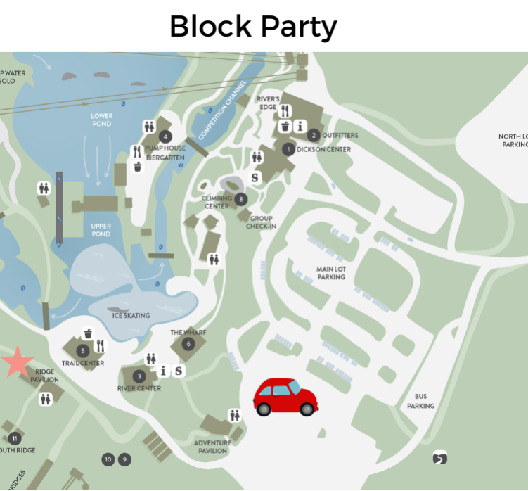 Block Party will be hosted in the Ridge Pavilion (follow the signs when entering the facility). Dogs are allowed and welcome in the Pavilion but must remain on a leash. Parking is 12.00.